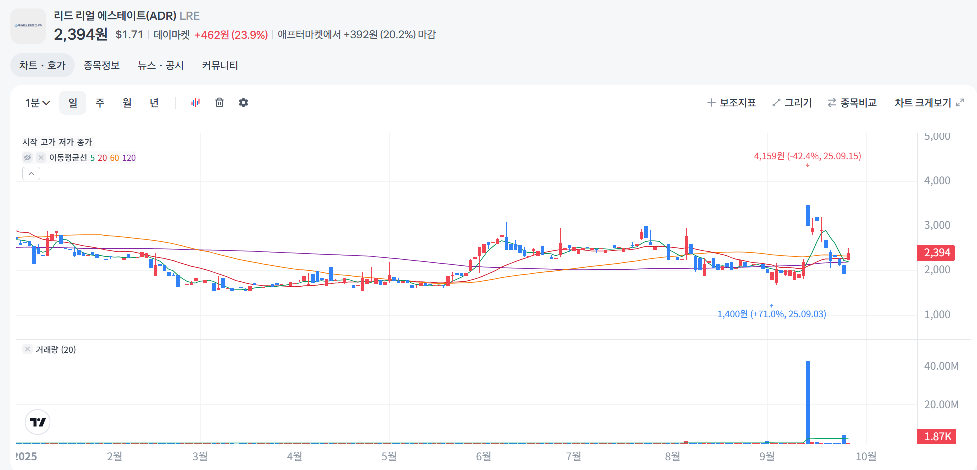 2025년 6월 말부터 9월 말까지 LRE 주가는 글로벌 부동산 시장 조정과 실적 기대감으로 롤러코스터를 탔어요. 초보자 여러분, 주가 차트는 '경제 지도'예요. 소형 ADR 주라 변동성이 커요.