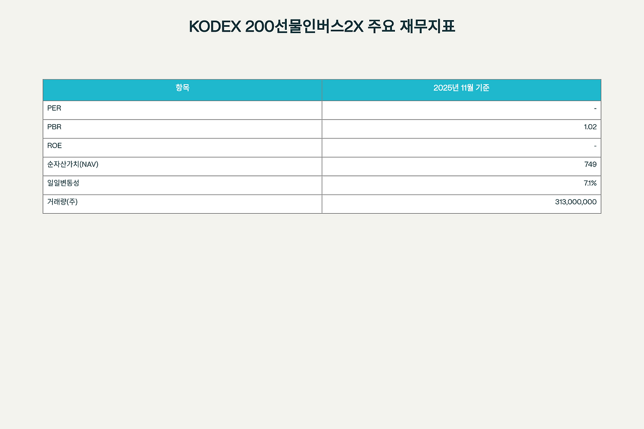 KODEX 200선물인버스2X 주요 재무지표 (2025년 11월 기준)