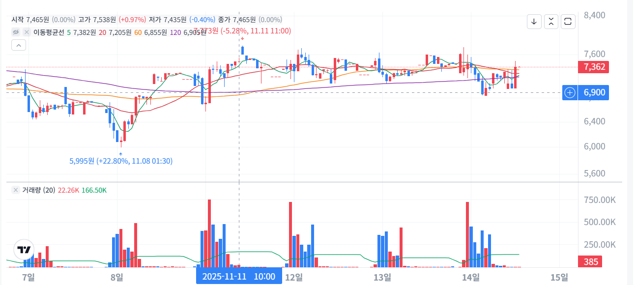 🔔 상장일 110% 폭등! 단기 급랭 후 최근 횡보… 1년 기준 거의 2배 상승