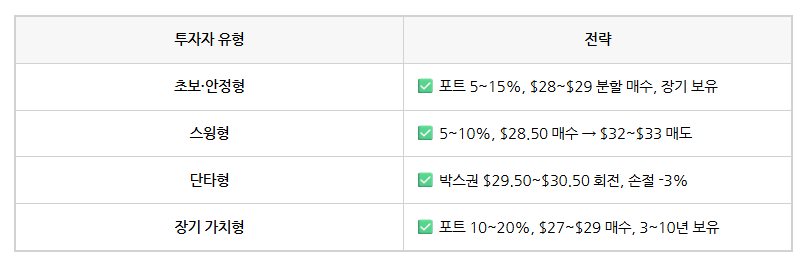- 3개월간 $27.50 ~ $30.80 박스권 상승