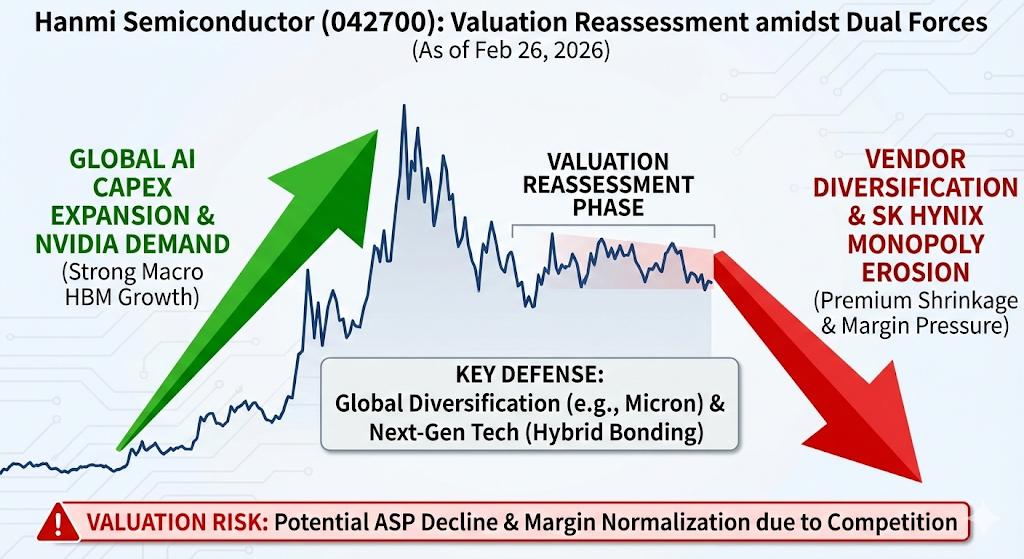 "글로벌 HBM 설비 투자(CapEx) 확대라는 거시적(Macro) 호재와, 주력 고객사 내 '독점 공급 프리미엄'의 축소라는 미시적(Micro) 변수가 교차하며, 시장의 눈높이가 새롭게 조정되고 있는 가치 재평가 구간입니다."