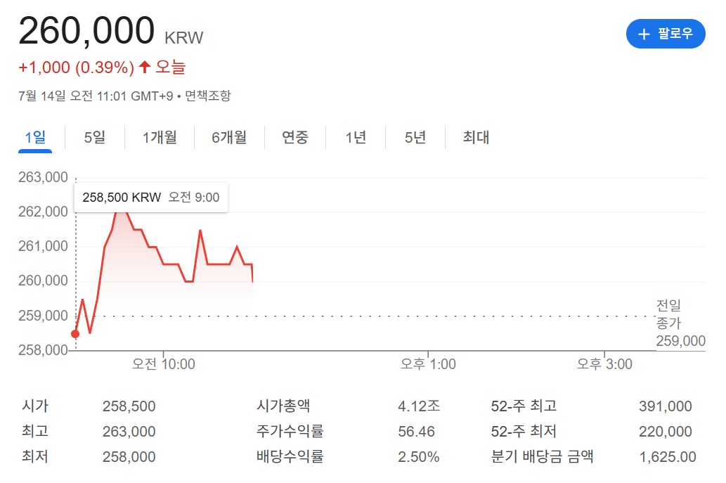 현재가: 261,500원