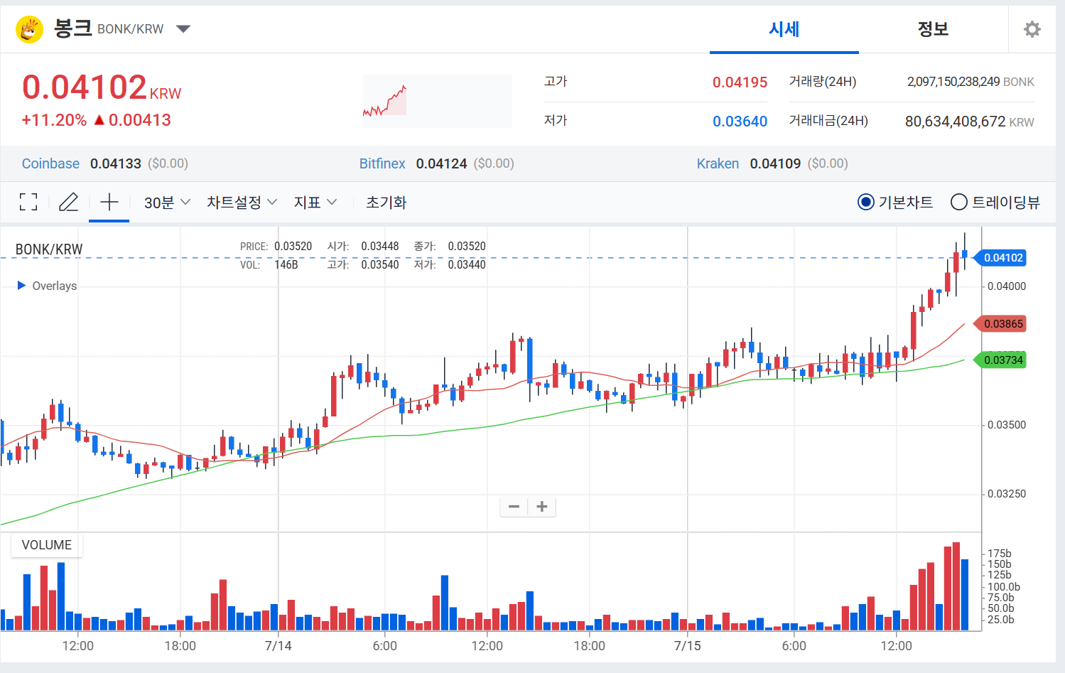 - 주요 거래소에서의 거래량 증가 (업비트 24시간 거래량 85.64백만 달러)