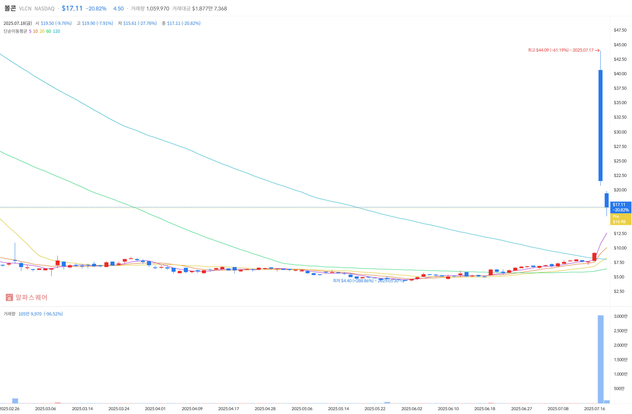| 상장거래소 | NASDAQ (VLCN) |