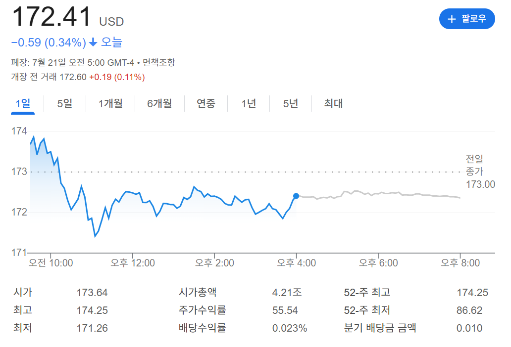 📅 기준일: 2025년 7월 18일 (금요일 종가 기준) 💵 종가: 172.41달러 📈 환율: 1,392.60원 📊 최...