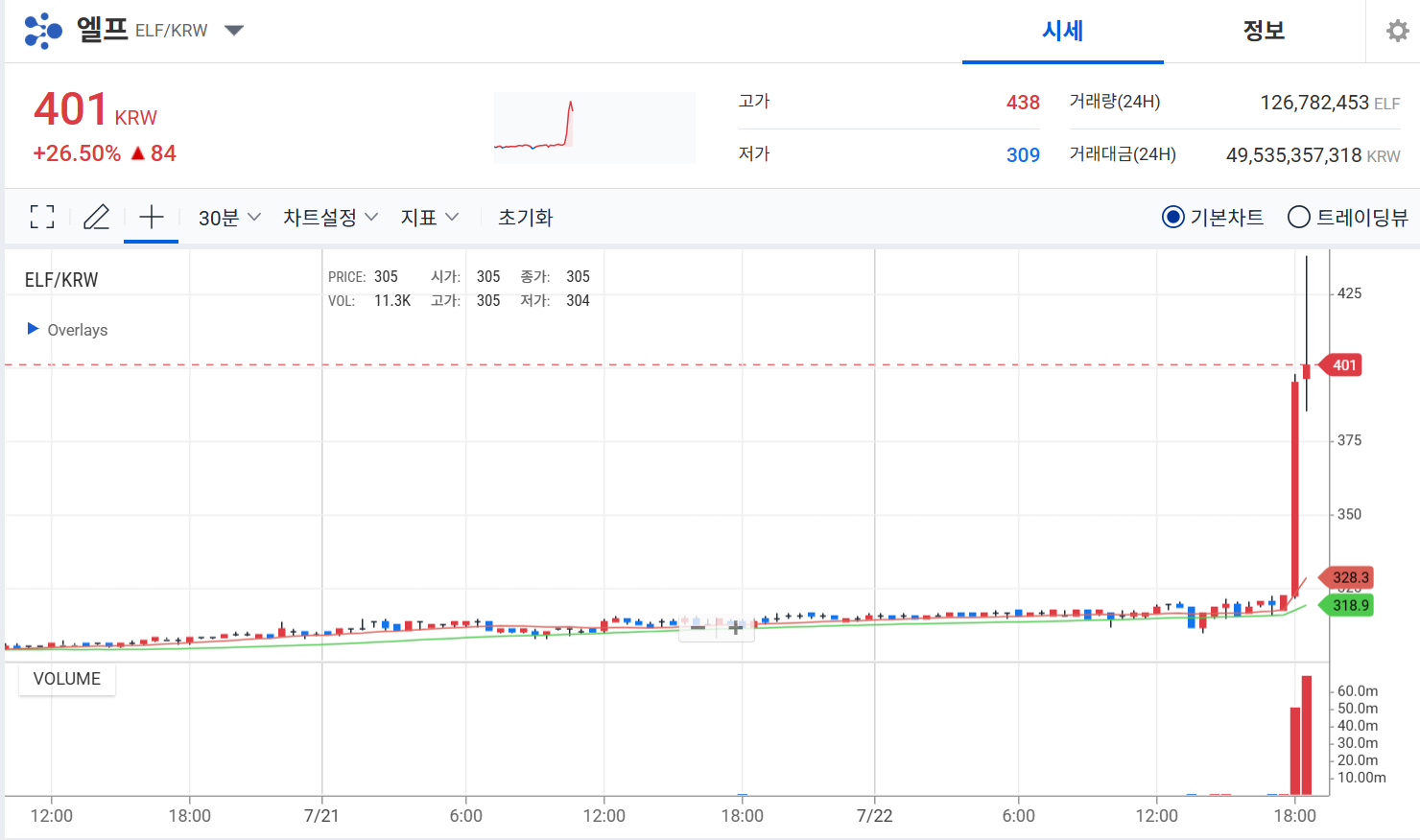 - 지난 1년간 가격이 -54.73% 하락, 시장 변동성 높음