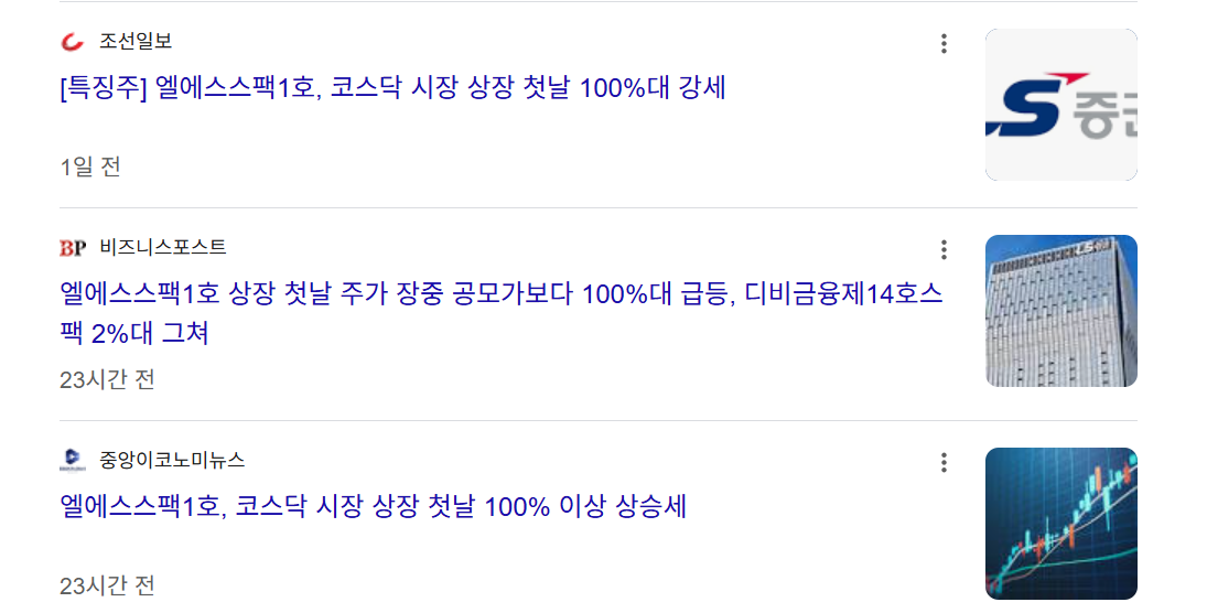 특징주 엘에스스팩1호, 코스닥 시장 상장 첫날 100%대 강세