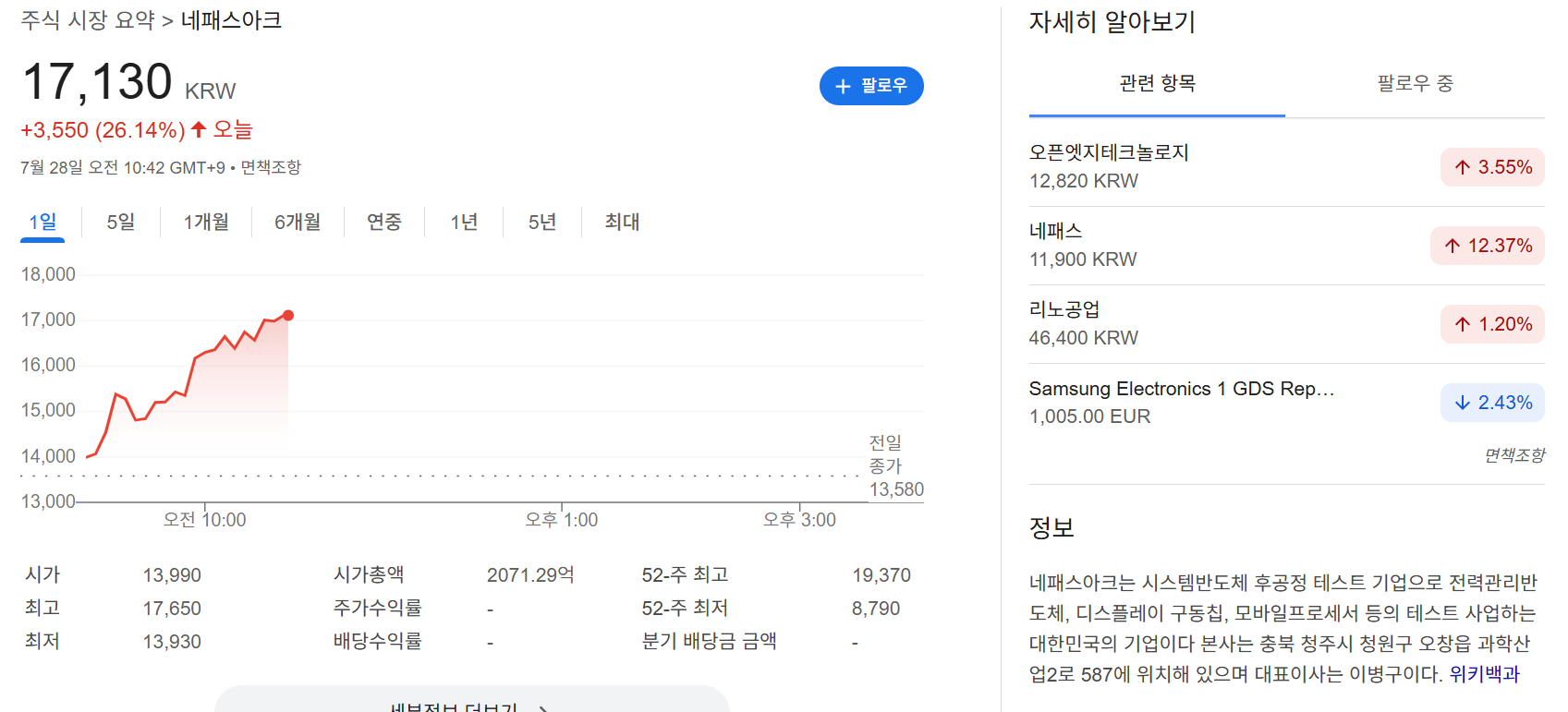 - 주가 변동성: 소형주 특성상 시장 변동에 민감, 최근 1개월 변동률 약 12%.