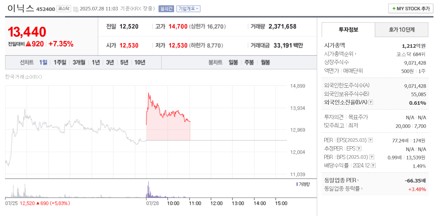 🚀 2025년 7월 28일 상한가 29.93% ▲ (10,550원)
