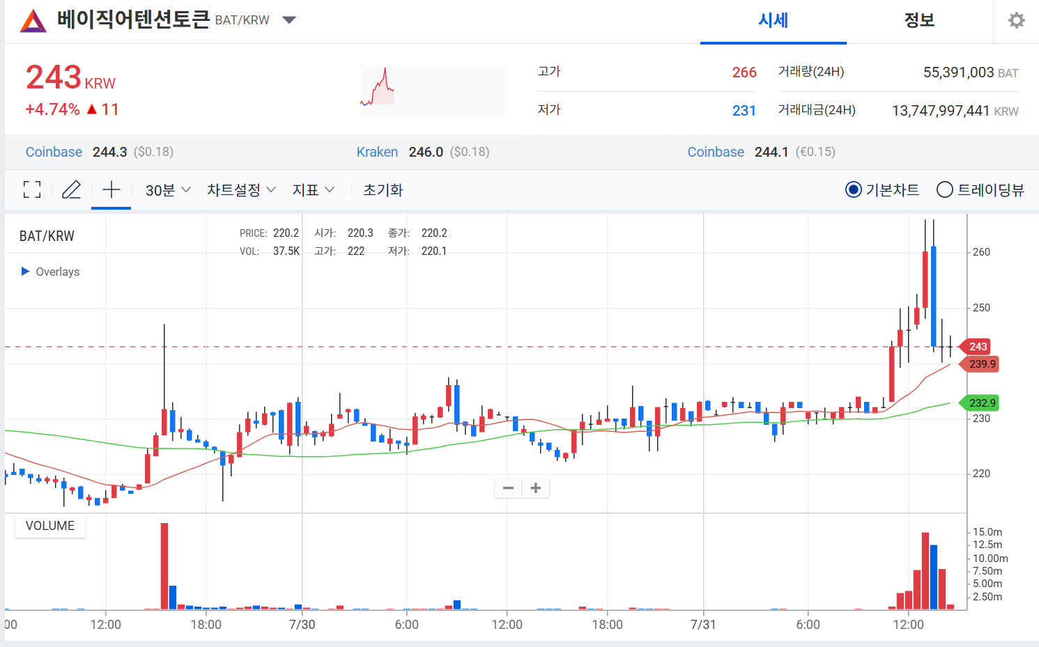 토큰 유통량 15억 BAT (99% 유통)