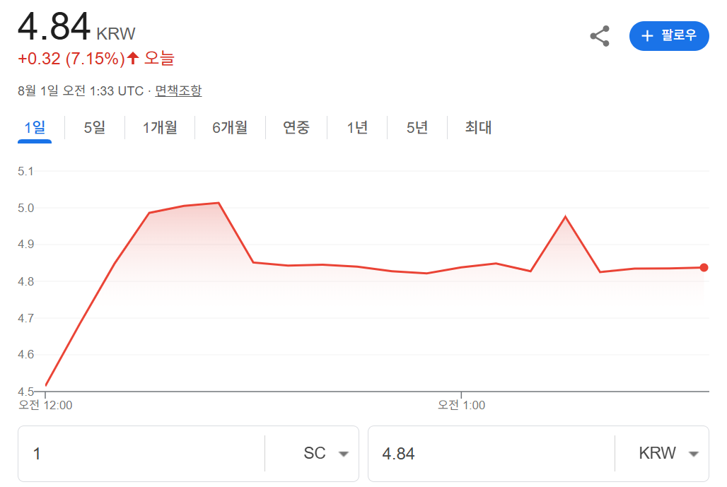 - 시장 하락: 암호화폐 시장 전반의 하락은 SC 가격에 부정적인 영향을 미칠 수 있습니다.