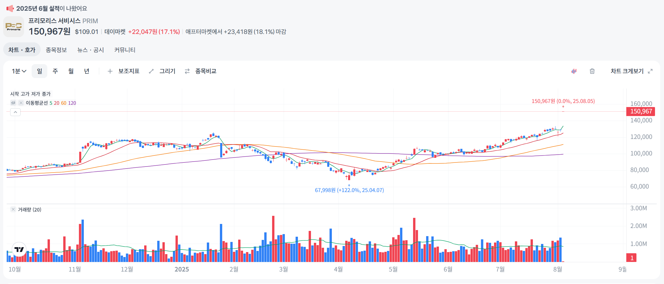 - Investing.com - PRIM 주가 및 분석 [주가 차트 및 기술 분석]