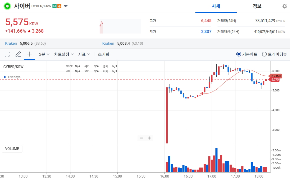 현재 (2025년 8월 13일 기준) CYBER 가격은 약 $2.82 USD (KRW 약 3,850원)로, 시가총액 $129M입니다. 24시간 거래량 $1.36B으로, 최근 47.68% 상승 (YTD 고점 $4.5 돌파). ATH $15.99 (2023년 9월, -82.36% 하락), ATL $0.8991 (2025년 4월, +213.67% 상승).