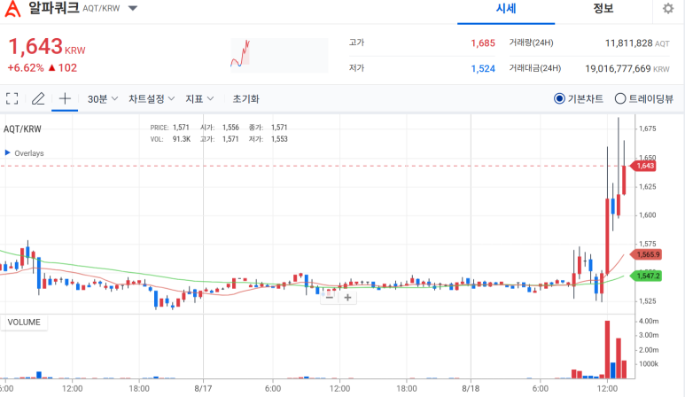 현재 (2025년 8월 18일 기준) AQT 가격은 약 $1.15 USD로, 시가총액 약 $34.5M입니다. 최근 24시간 +3.18% 상승했으나, 장기적으로 변동성 컸어요. 순환 공급량 3천만 개, 총 공급량 3천만 개예요.