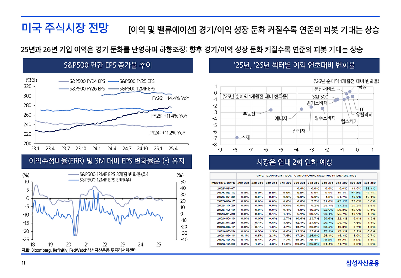 - S&P100(상위 100대형주)은 9.8% 상승했지만, 중간대형주는 AI·산업주 성장으로 더 높은 수익을 냈어요.
