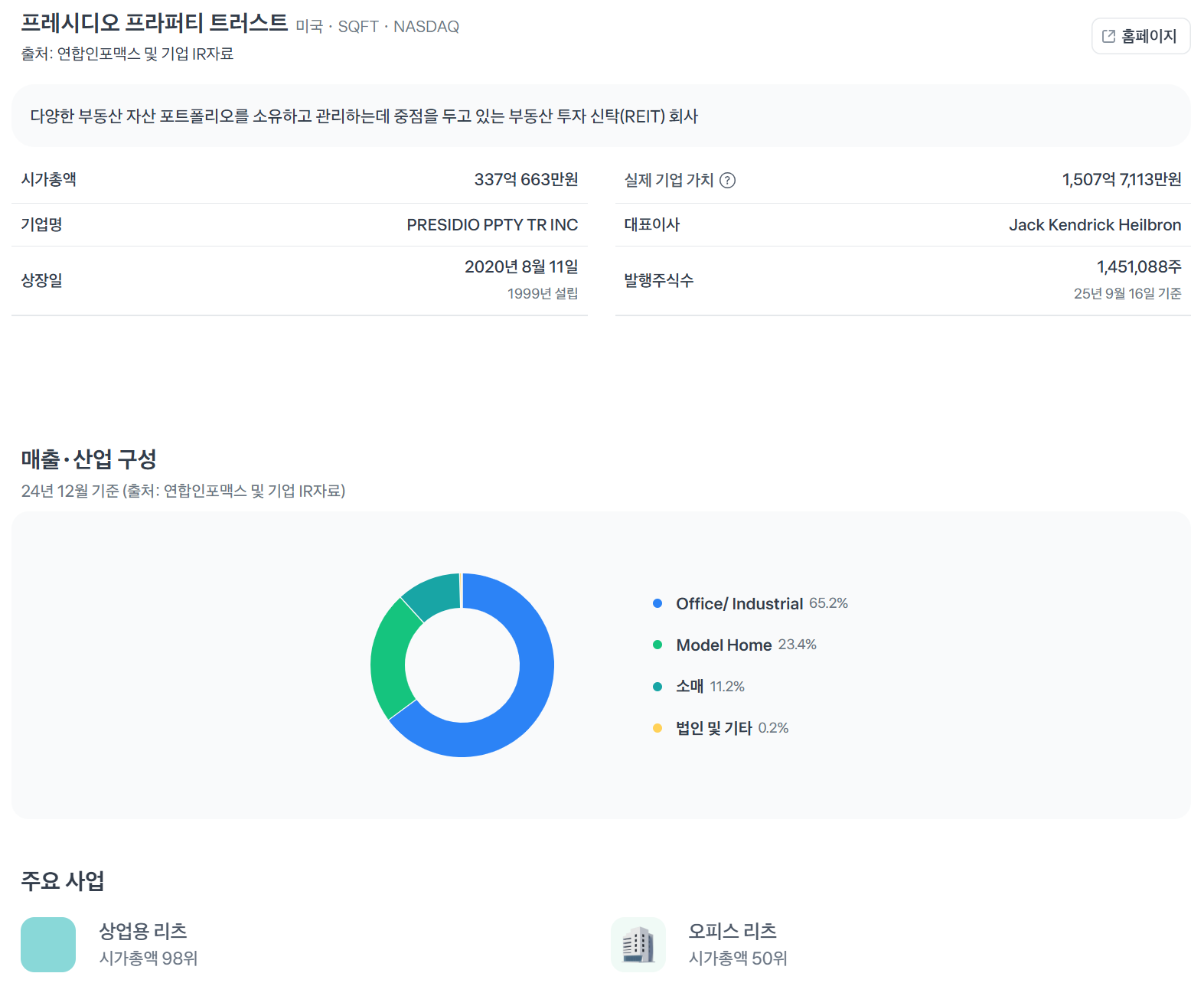 - SQFT는 금리 민감도가 높은 REIT → 금리 인하 시 주가 탄력성 확대 전망