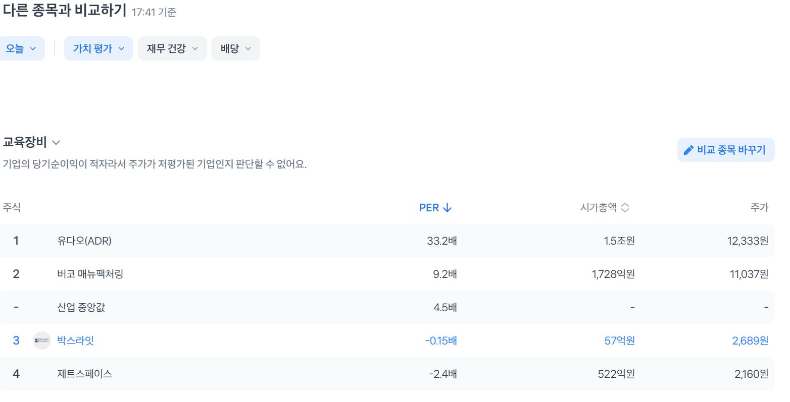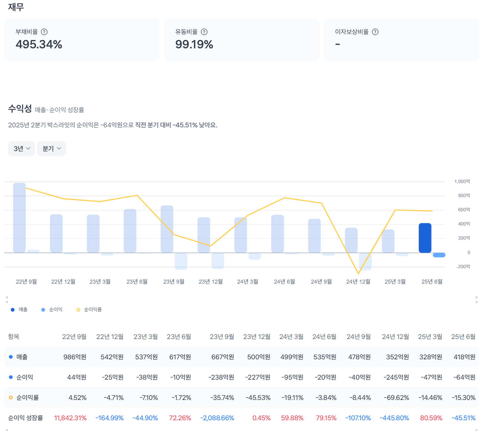 | PER (주가수익비율) | -- | 손실 중이라 미제공. 미래 이익 기대! |