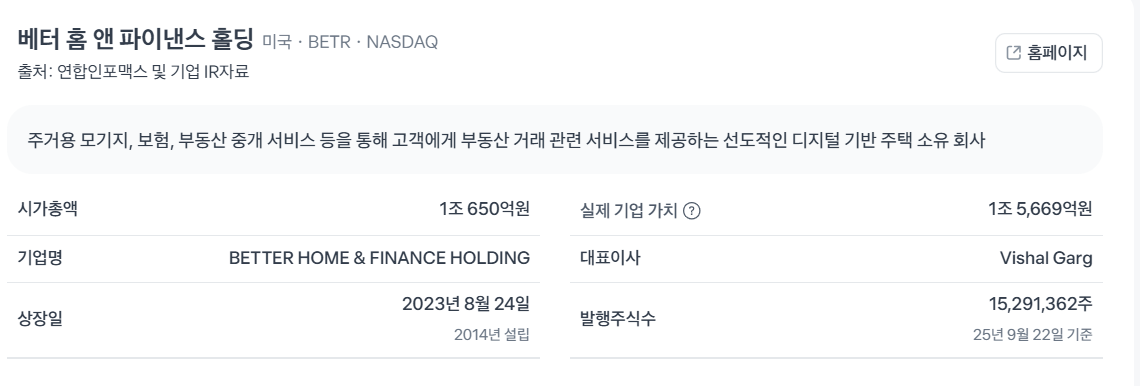 | 베터 홈 앤 파이낸스(BETR): AI로 혁신하는 모기지 시장의 떠오르는 별, 2025년 폭발적 성장 가능성! (2) | 2025.09.23 |