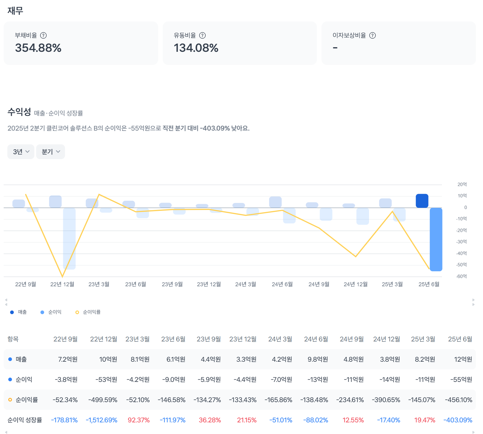 | ROE | -150% | 자본 대비 큰 손실. 개선 필요. |