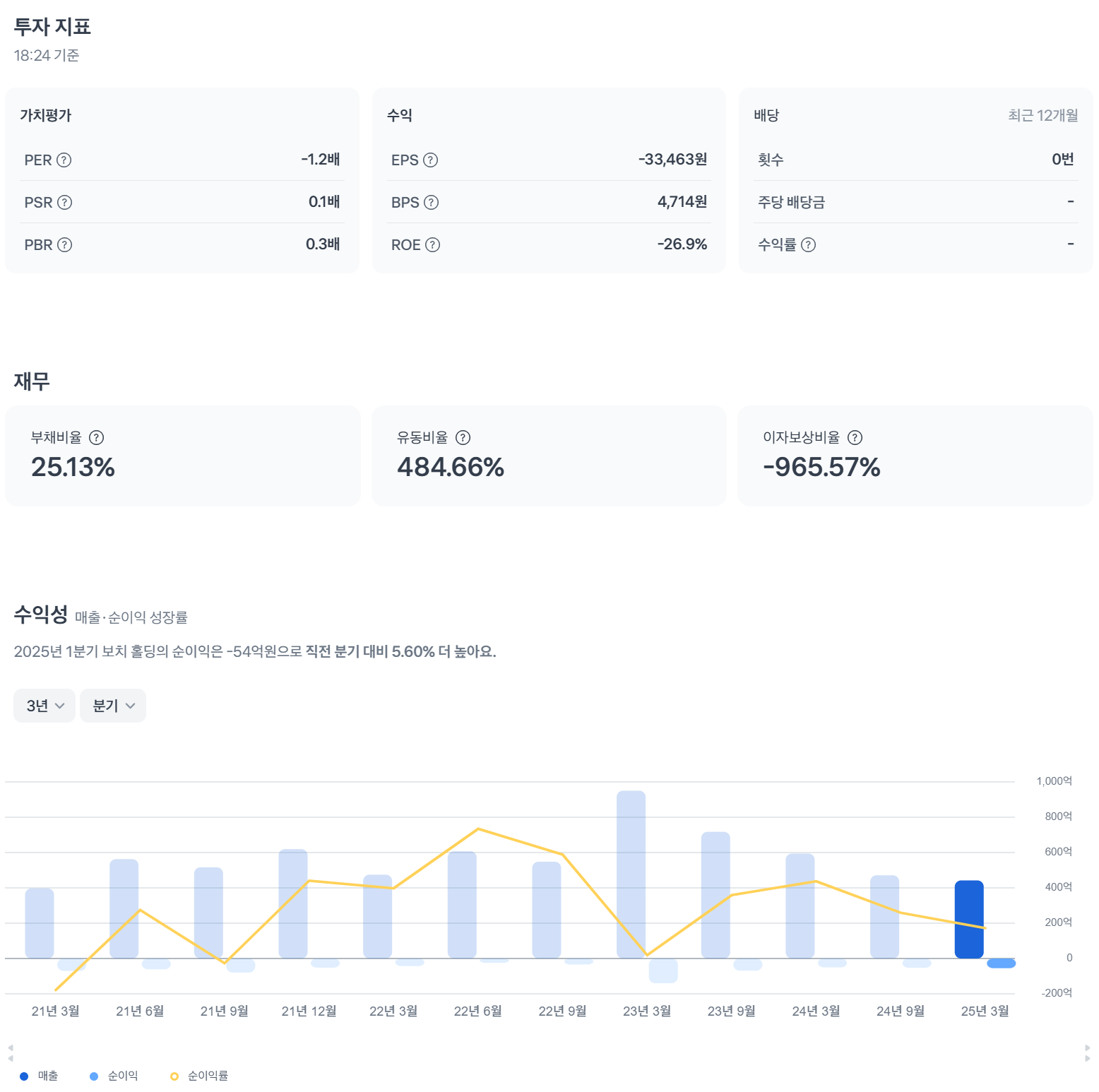 | 부채/자본 비율 | 25.13% | 부채 낮아 안정적. |