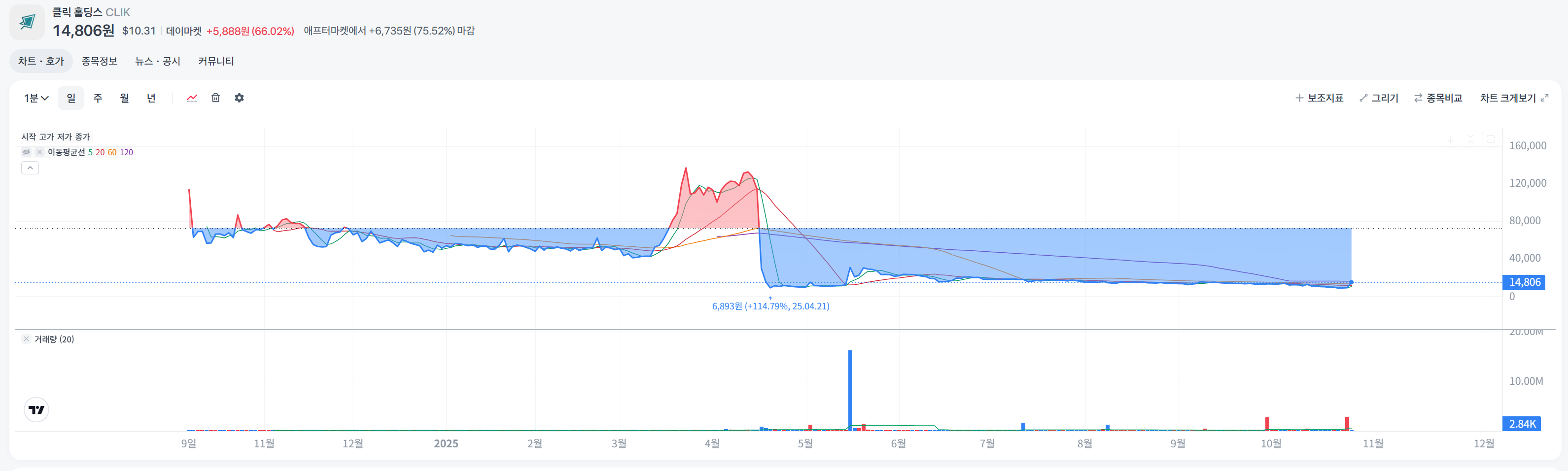 | 1년 변동폭 | -85% (작년대비) | - | 상장 이후 조정+단기 랠리 반복 |