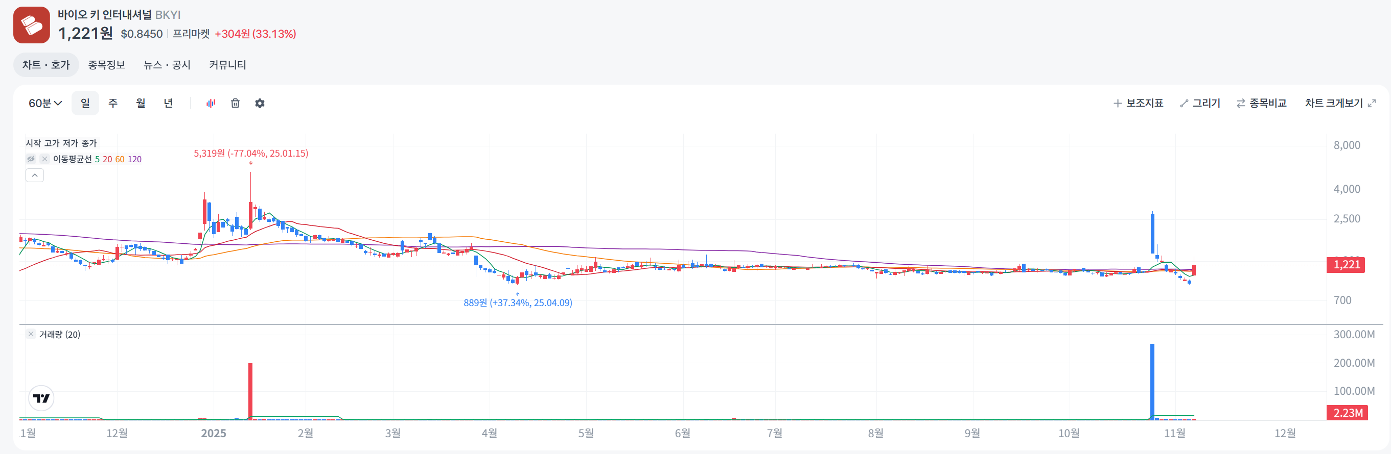 - 52주 최저 0.61~최고 3.68, 최근 워런트 리픽싱 후 기관 매수/변동성 폭발