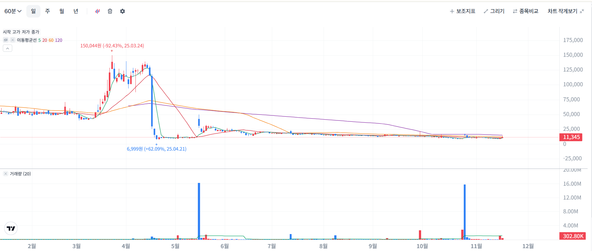 - 1개월: -33% / 1년:** -86% 폭락