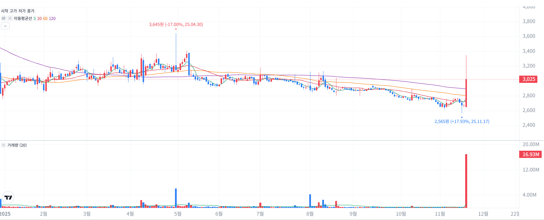 | 2025.09~11 | 2,650원 | 2,770원 | 3,400원 | 저점 박스권 반등, 기관/외국인 순매수세 확대 |