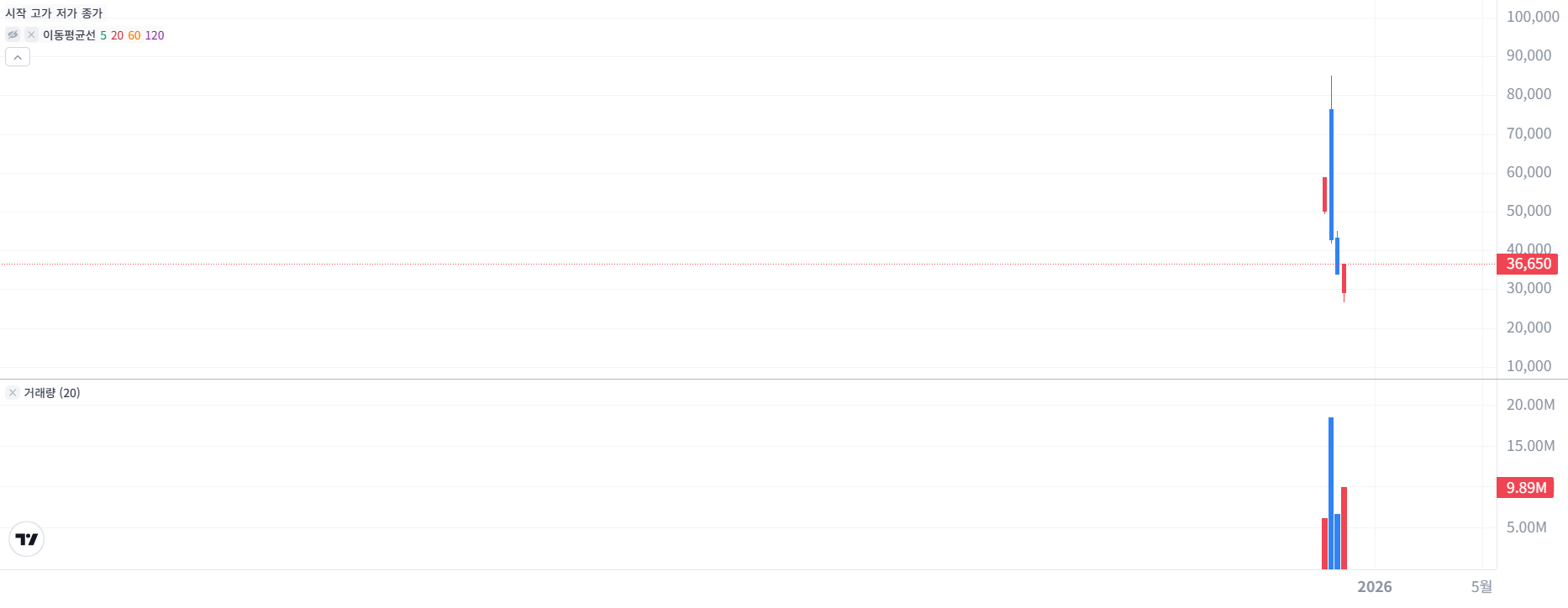 - 매매팁: 신규상장주 특성상 급등 후 눌림 목, 거래량 증가 타이밍 주목