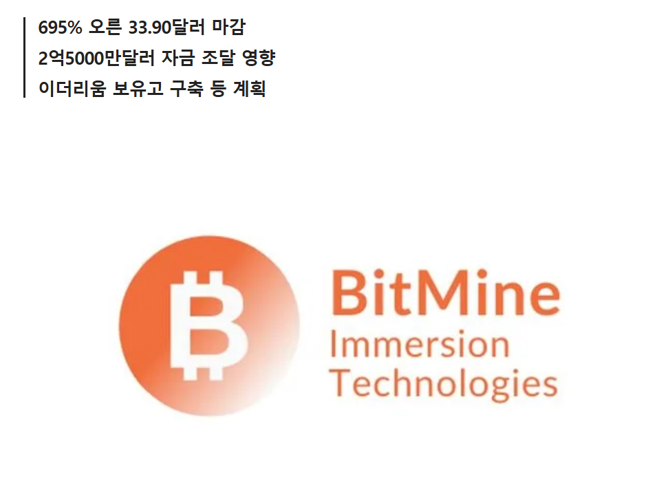 비트마인 이머전의 주가는 최근 몇 주 동안 급격히 상승했습니다. 시장 분석가들은 이더리움 채굴의 수익성이 높아지면서 이 회사 주가에 긍정적인 영향을 미쳤다고 보고 있습니다. 특히, 회사가 이더리움 투자 전략을 공식화한 이후 주가가 폭등한 것은 주목할 만한 사실입니다. 최근 뉴스에 따르면, 비트마인 이머전의 주가는 이더리움 인수와 관련하여 자사주 매각을 통해 2억5000만 달러를 조달한 후 3000% 이상 급등했다고 합니다.