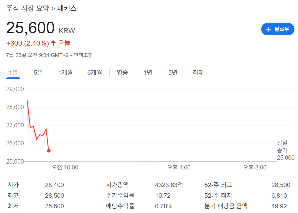 📊 매커스 상세 기업정보 - FnGuide 📈 매커스 실시간 주가 및 차트 - Investing.com 💹 매커스 종목정보 - 네이버 금융 📊 매커스 투자정보 - 알파스퀘어 🏢 매커스 공식 IR 페이지