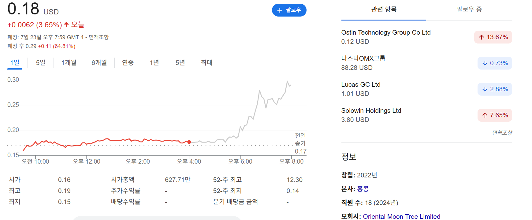- 52주 변동폭: $0.15 ~ $12.30