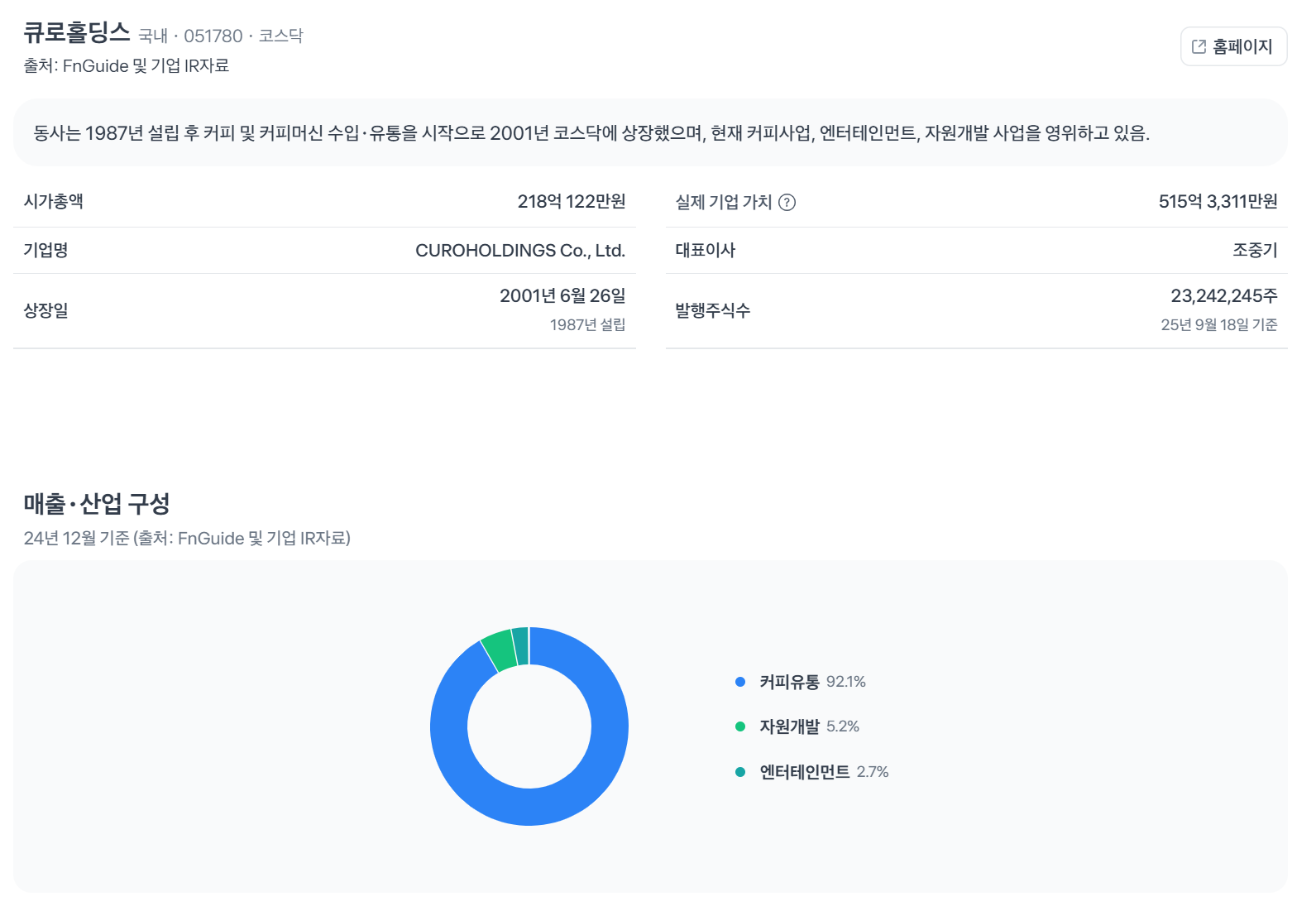📌 큐로홀딩스 (051780, 코스닥)