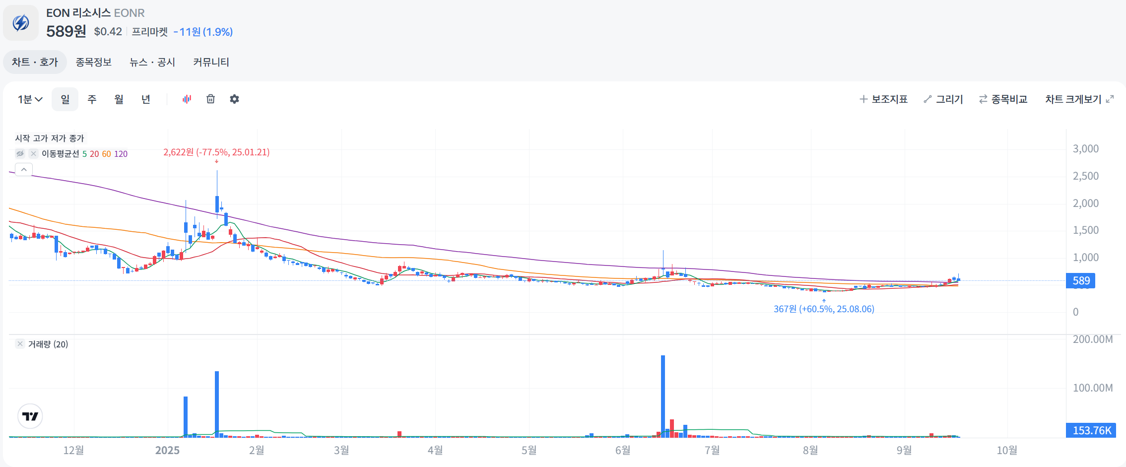 정리하자면 EONR은 높은 리스크와 높은 변동성, 그리고 그 속에서 발견될 수도 있는 숨은 보석 같은 기회를 동시에 안고 있는 종목입니다.
